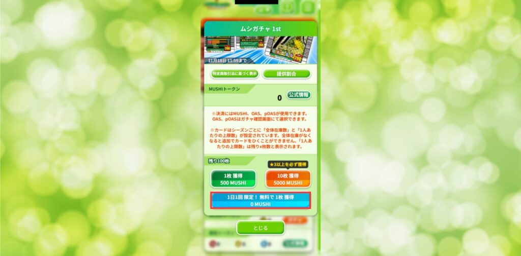 MUSHInomics with MUSHIKINGをプレイするには、まずガチャを引くためのガス代を用意しなければなりません。