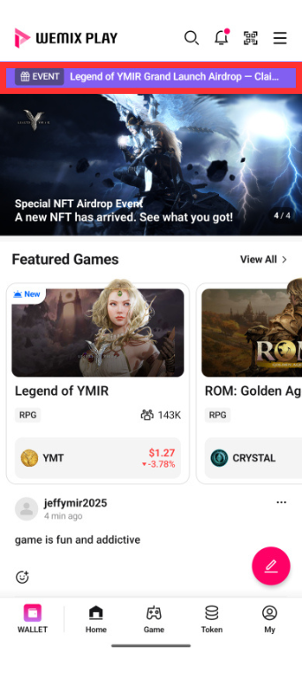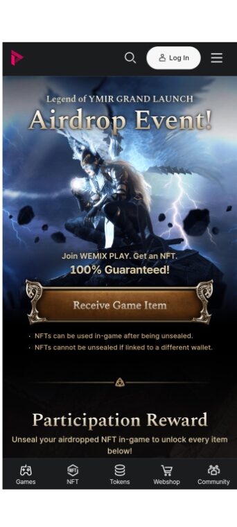 YMIRエアドロップイベントはWEMIX PLAYに会員登録することで、NFTアイテムを獲得できるイベントです。