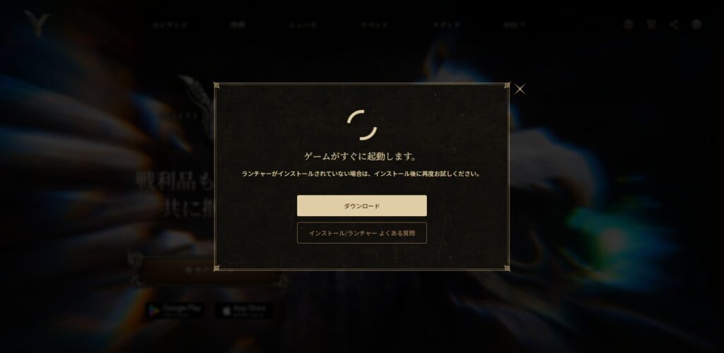 「ダウンロード」をクリックすると、自動的に「LegendOfYmirGLauncher_Installer.exe」がダウンロードされます。