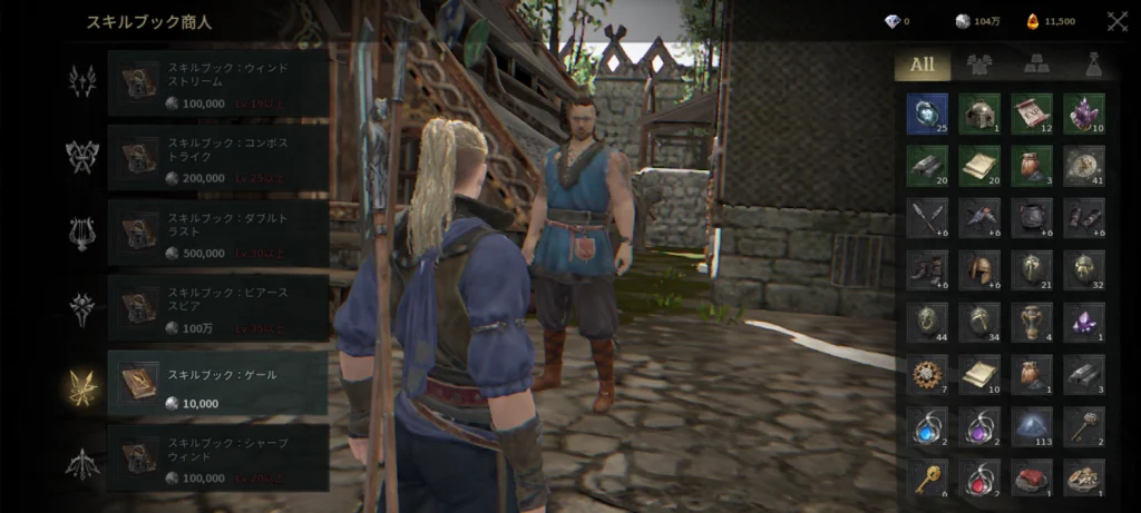 銀貨がある程度たまったら、スキルブック商人からスキルブックを購入しましょう。